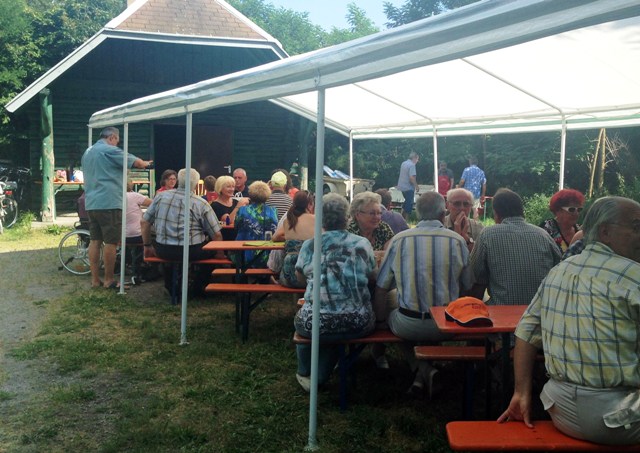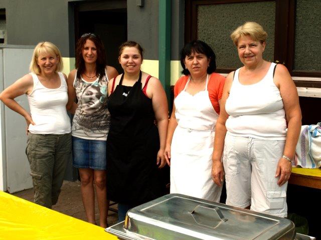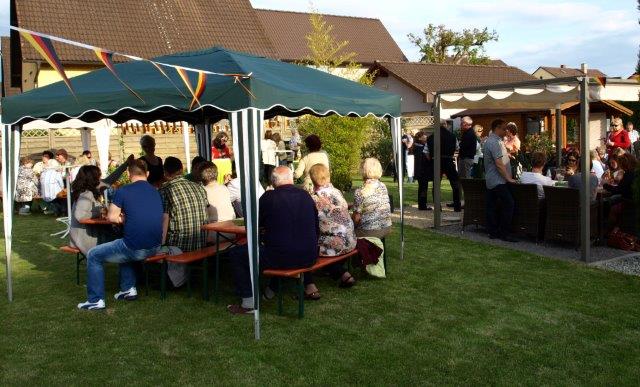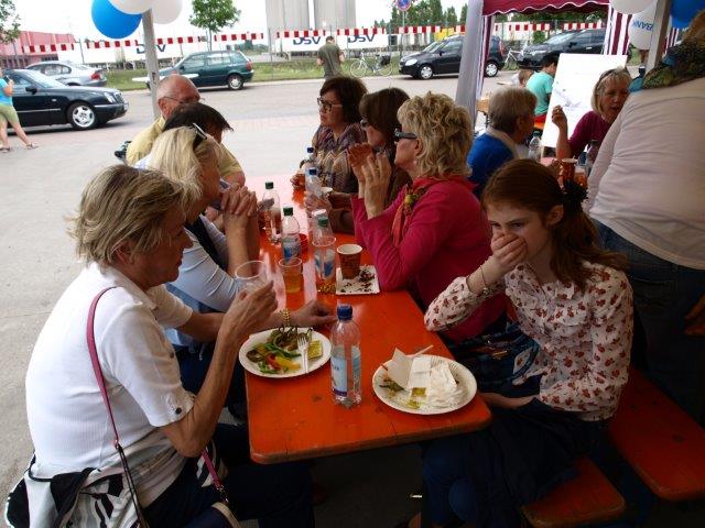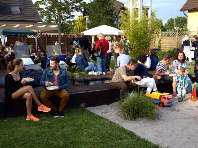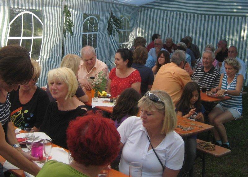 die zahlreichen Gäste mit allerlei leckeren Speisen und