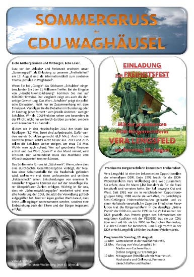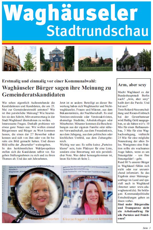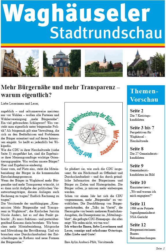Beim „Talk“ geht es ums Zuhören, Aufnehmen und Umsetzen. Warum diese Aktionen? Vor Ort, sozusagen vor den Haustüren, suchen wir das Gespräch. Uns geht es - schlicht und einfach - um mehr Bürgernähe und Transparenz. Viele Waghäuseler Bürgerinnen und Bürger fühlen sich nicht oder nur unzureichend informiert. Das wollen wir ändern. Vorher die Mitbürger informieren, nicht hinterher.