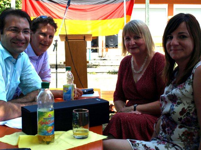 Gast beim inzwischen zweiten „Talk im Viertel“ waren auch Bundestagsabgeordneter Olav Gutting und sein Landtagskollege, Innenminister a.D. Heribert Rech, die in den großen Garten von Gastgeberin Tanja Adam in der Marienstraße kamen. Beide Politiker standen für vielerlei Fragen zur Verfügung, versicherten aber auch, mit ihrer Anwesenheit die Arbeit der CDU vor Ort unterstützen zu wollen. Zur Intention des Bürgertreffs sagten die CDU-Vorsitzende Aylin Arabaci-Pfab und ihre Stellvertreterin Tanja Adam: „Bürgernähe und Transparenz sind uns ganz, ganz wichtig. Sie gehören zu unserer Neuausrichtung. Es ist für uns ein Muss, die Bürger über neueste Entwicklungen zu informieren und diese ihnen nicht vorzuenthalten.“