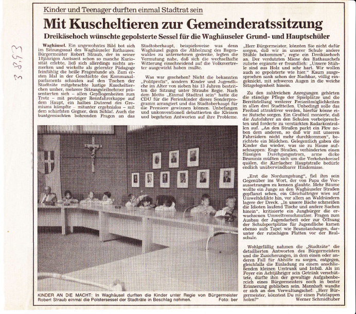 2012 hieß es auf der Homepage der Stadt: Im Rahmen des Waghäusler Ferienprogramms wurde in diesem Jahr erstmals der Programmpunkt „Besuch beim Bürgermeister“ angeboten…2013 wurde an die Premiere im Vorjahr erinnert.