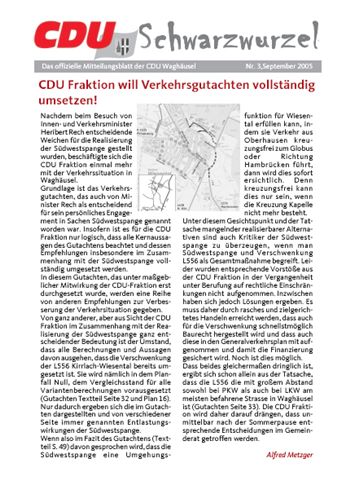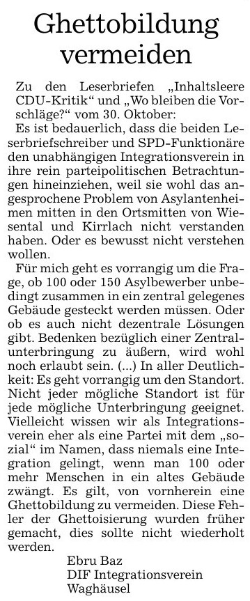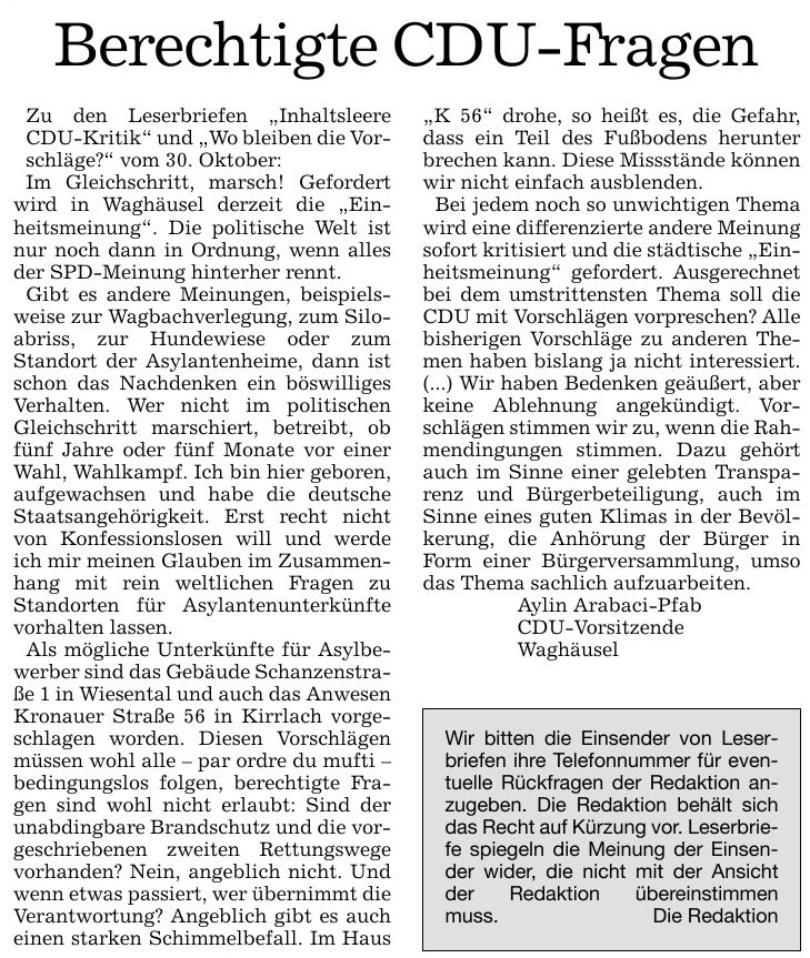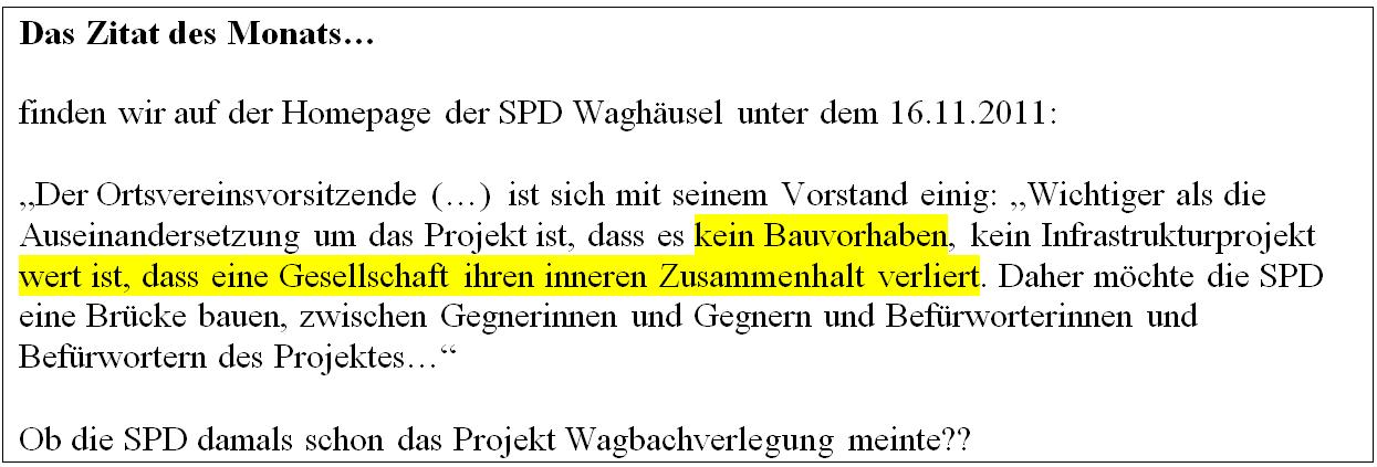 03. Oktober 2013 Leserbrief zur WagbachverlegungIm „Wochenblatt“ ist folgender informativer Leserbrief erschienen, der hier nachzulesen ist: Er bezieht sich insbesondere auf folgenden Bericht vom 11. September 2013: