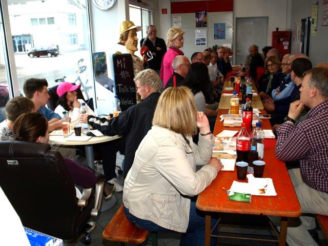 Angesprochen wurden die Themen Service, Haltbarkeit und Frische. Nach Auffassung der Union ist hier ein Höchststandard gewährleistet. Wie sieht es mit der Sauberkeit des Geländes um McDonald’s herum aus?, lautete eine Frage: Dies vor dem Hintergrund, dass ein Bürger sonntagabends herumliegende Becher gesehen und dies der CDU gemeldet hat. Leider gebe es immer ein paar Mitbürger, die sämtliche aufgestellten Abfallbehälter mit Missachtung strafen. „Wir sind hinterher, wir achten darauf und wir bemühen uns, ein sauberes Bild zu bieten“, versicherte Schnell.