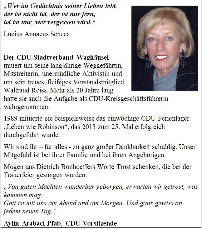 Prozent. Auch Dank des Stadtverbandes -"die heimische CDU,